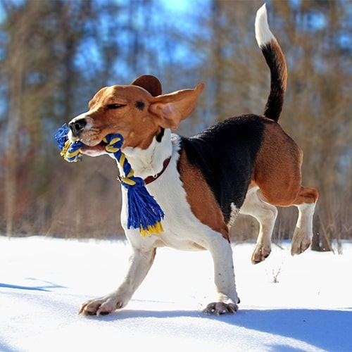 Your Beagle will need at least an hour and a half of exercise a day. We’d recommend a combination of walking and running for this. In addition, they’ll also need playtime, training and free time in a secure garden. Beagles are scent hounds, so they’ll really enjoy playing scent games with you and getting the chance to use their keen sense of smell.